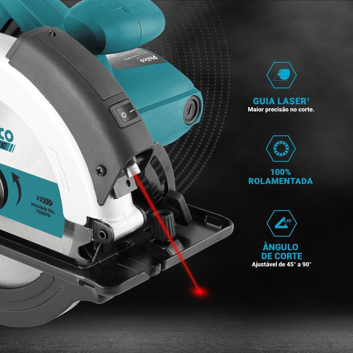 Um recurso que surpreende e faz muitos acharem que a Serra Circular Philco PSC01 vale a pena é a guia laser integrada (Mira Laser). Em serras dessa faixa de preço, isso é raro. O laser ajuda a manter a linha de corte reta, ideal para iniciantes.