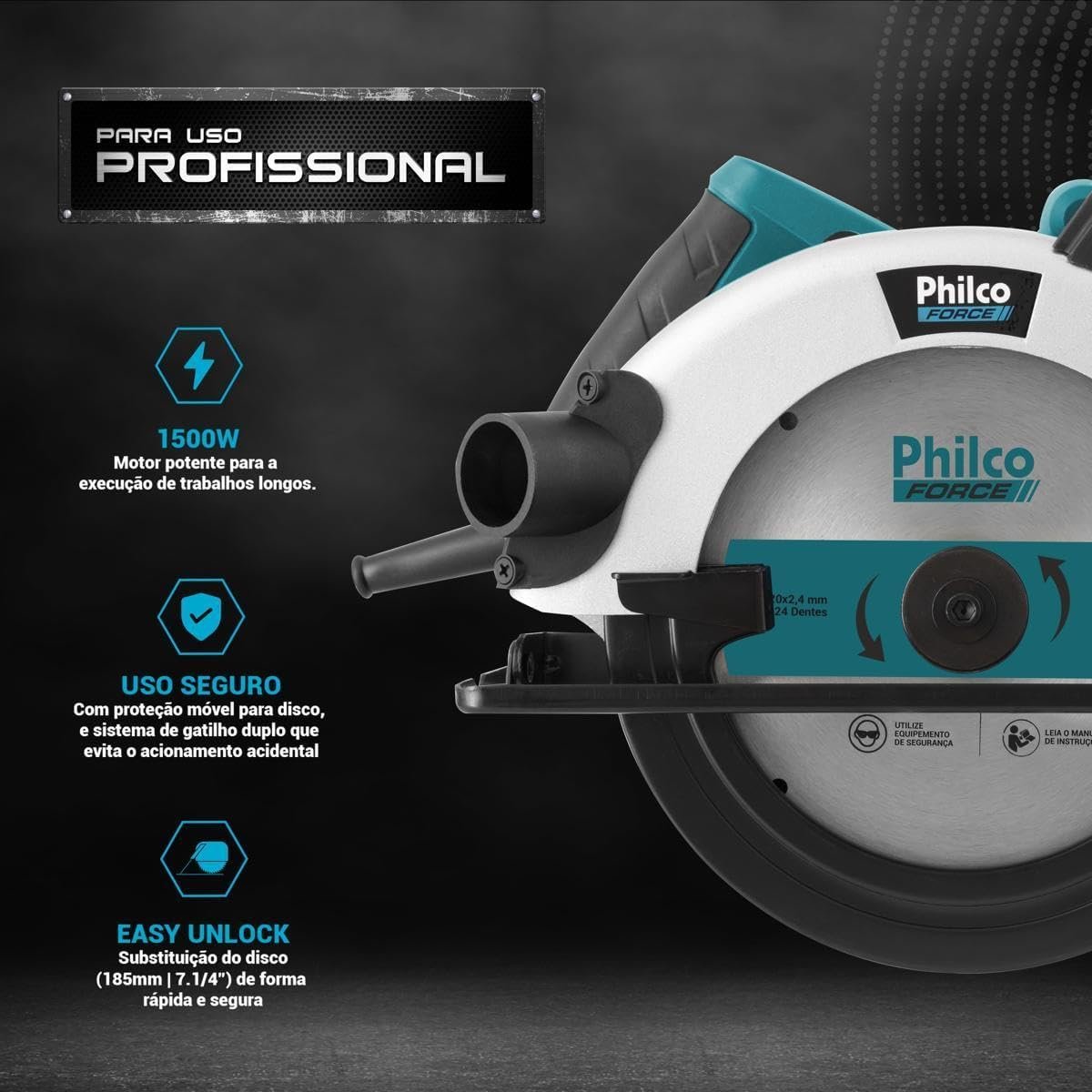 Segurança é fundamental. O modelo conta com o sistema “Safe System”, uma trava que impede o acionamento acidental. Isso é crucial para hobbistas e confirma que a Serra Circular Philco PSC01 vale a pena para quem tem menos experiência.